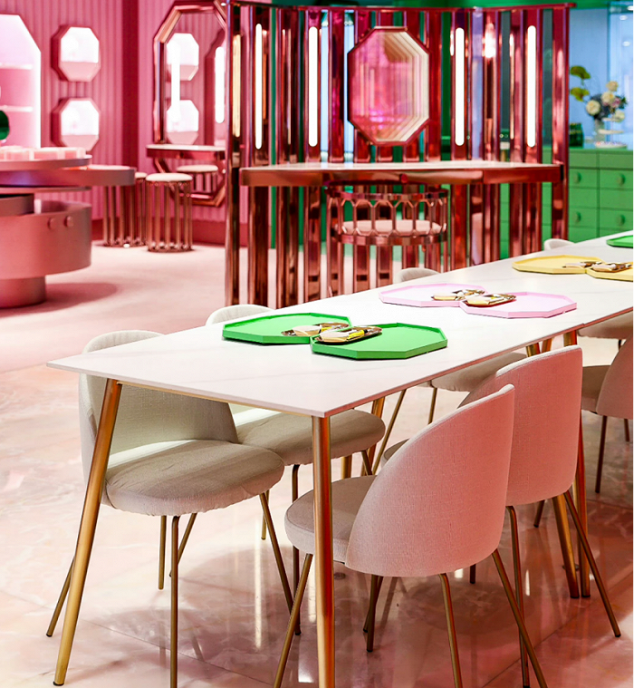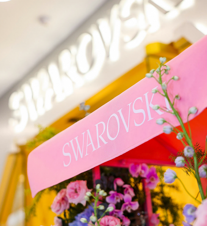 施華洛世奇聘請了意大利設(shè)計(jì)師Giovanna Engelbert擔(dān)任創(chuàng)意總監(jiān),在他的引領(lǐng)下,施華洛世奇大膽地用粉色天鵝替換了原本的LOGO,官方文案也稱品牌開啟了全新奇幻旅程。施華洛世奇還陸續(xù)推出了主打酷炫色彩風(fēng)格的全新概念零售店WonderLux、WonderColor。