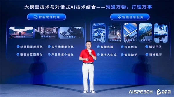 7月12日,“東風生萬物”思必馳DFM-2大模型及創(chuàng)新技術應用成果發(fā)布會在蘇州成功舉行,思必馳董事長、CEO高始興,聯(lián)合創(chuàng)始人、首席科學家俞凱,分別分享了思必馳的未來戰(zhàn)略以及以DFM-2大模型為代表的對話式AI創(chuàng)新技術。