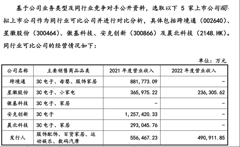 同已上市的跨境電商對(duì)比,賽維時(shí)代是少有的以服裝銷售為主導(dǎo)企業(yè),2022年貢獻(xiàn)的收入超30億元,占總營(yíng)收的六成。其他企業(yè)更多以3C電子為主。