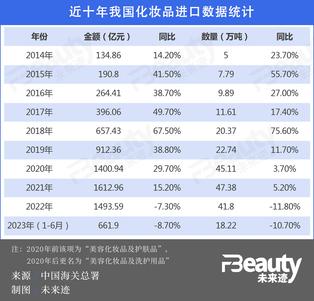 與總盤持續(xù)回暖的狀態(tài)形成鮮明對比的是,化妝品進(jìn)口數(shù)據(jù)持續(xù)下滑。