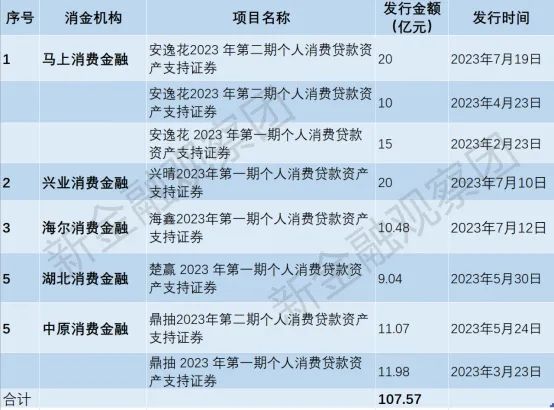 新經(jīng)濟觀察團統(tǒng)計發(fā)現(xiàn),年初至今,已經(jīng)有馬上消金、興業(yè)消金、海爾消金、湖北消金、中原消金等5家消費金融機構(gòu)發(fā)行了8單ABS項目,共募得資金超過107億元。