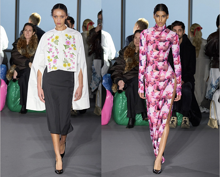 在近期的倫敦時(shí)裝周上,Christopher Kane 2023秋冬系列利用AI創(chuàng)作出了幾件連衣裙上的動(dòng)物印花圖案,正是右圖中所顯示的圖案。雖然這不算太復(fù)雜的設(shè)計(jì),但當(dāng)下AI(Artificial Intelligence人工智能)在服裝設(shè)計(jì)領(lǐng)域的滲透可見一斑。