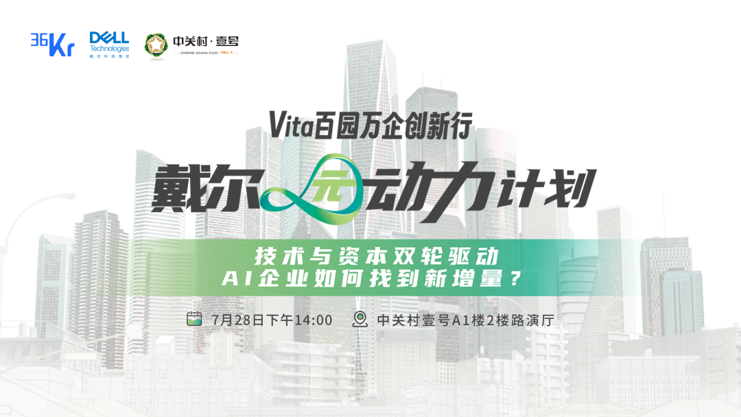 為了助力人工智能等科創(chuàng)企業(yè)精準定位自身在未來十年的發(fā)展戰(zhàn)略、把握時代增量,7月28日下午,36氪企服點評“Vita百園萬企創(chuàng)新行”聯(lián)手戴爾科技集團,在中關(guān)村壹號園區(qū)發(fā)起“新增量·AI企業(yè)深度研討沙龍”,邀請到科技園區(qū)AI大模型企業(yè)代表、AI創(chuàng)業(yè)者、知名投資機構(gòu)與大模型企業(yè)管理者,從資金、技術(shù)、生態(tài)等角度,共同探討AI企業(yè)的下一步。