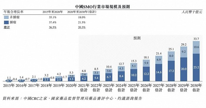2015年為11億元,2020年達到53億元,年復合增長率為36.5%,以腫瘤藥物臨床研發(fā)需求為主。