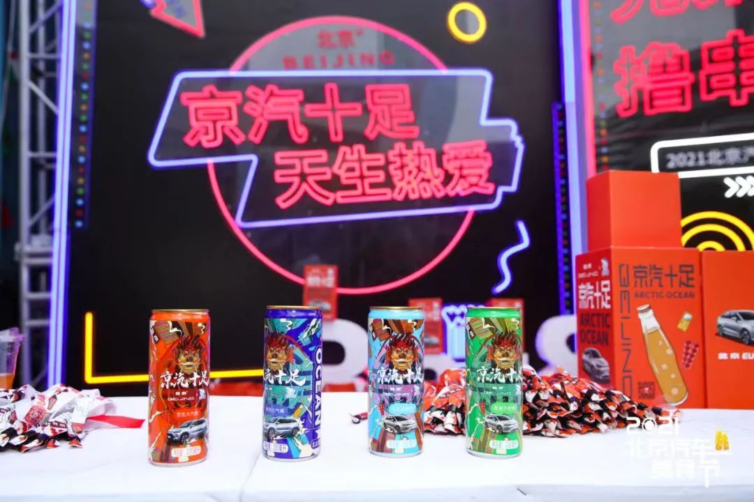 趁熱打鐵,北冰洋又在2021年玩起了“跨界聯(lián)名”,和北京汽車(chē)發(fā)布了聯(lián)名定制款車(chē)身涂裝,還推出了“京汽十足”定制口味汽水盲盒,掀起了一波又一波的輿論高潮。