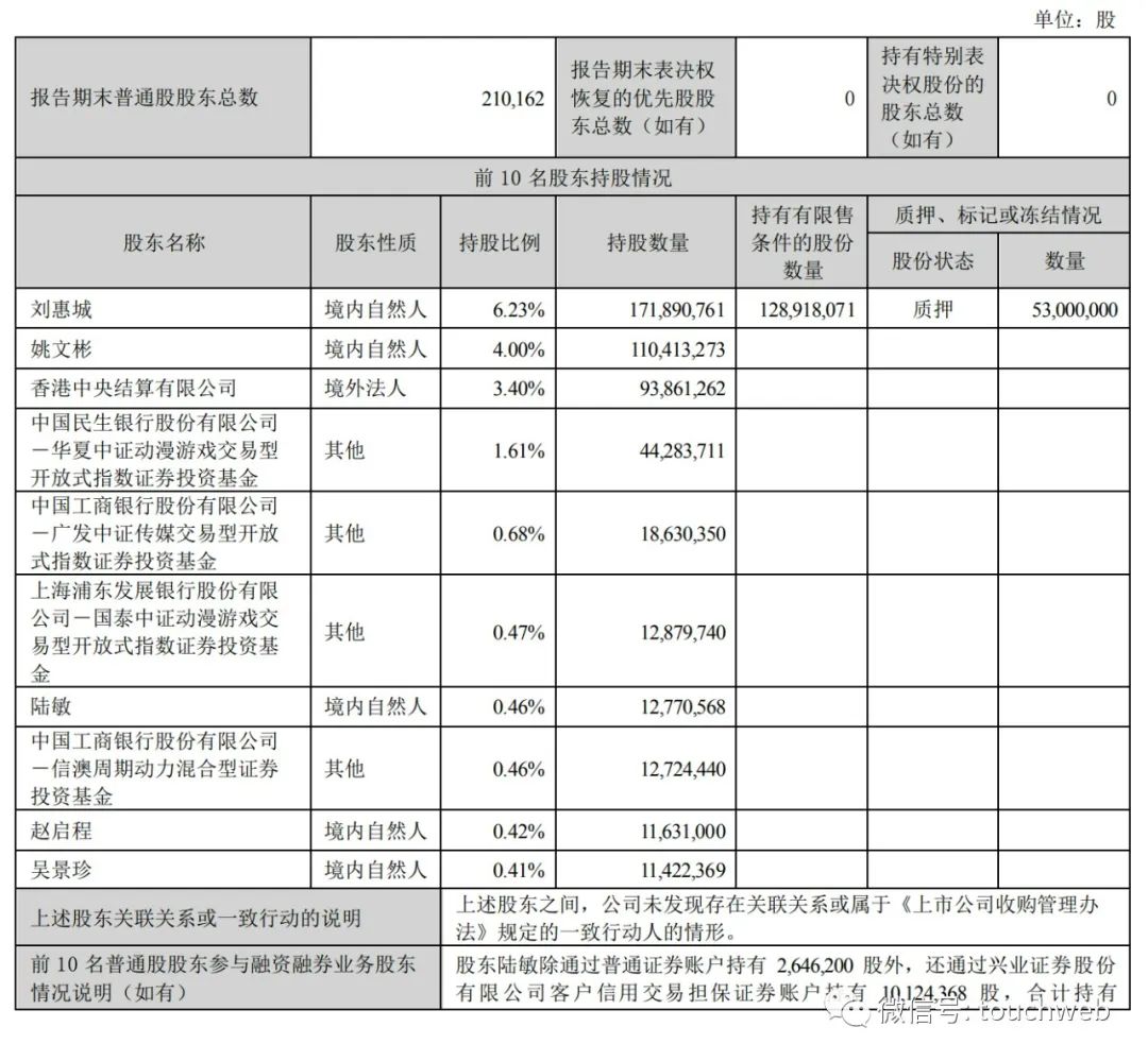 截至2023年6月30日,劉惠城持股為6.23%,姚文彬持股為4%,香港中央結(jié)算有限公司持股為3.4%,中國民生銀行股份有限公司-華夏中證動漫游戲交易型開放式指數(shù)證券投資基金持股為1.61%,中國工商銀行股份有限公司-廣發(fā)中證傳媒交易型開放式指數(shù)證券投資基金持股為0.68%;
