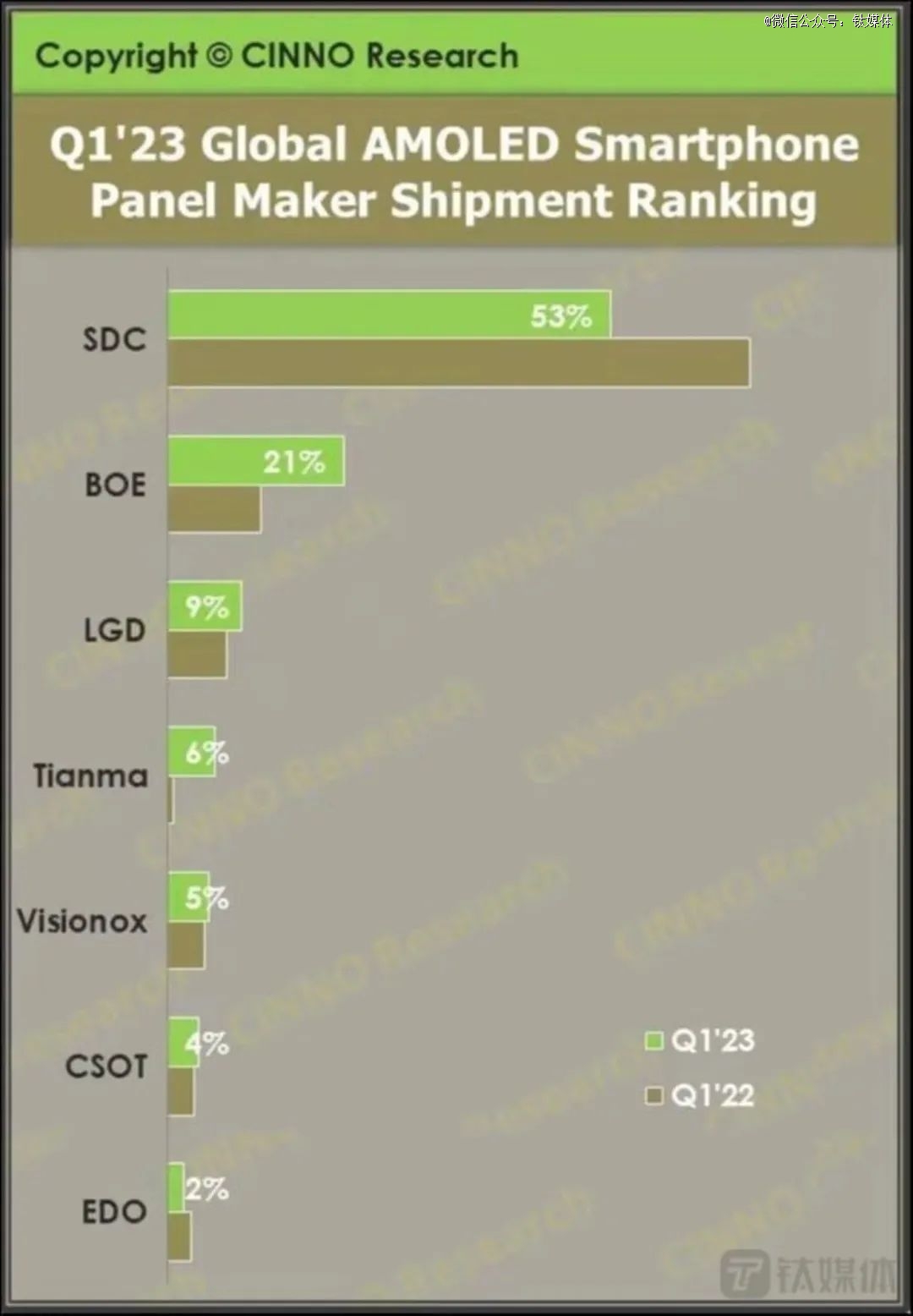 從智能手機AMOLED市場份額的變化中,也能夠看到國產(chǎn)屏廠的努力。