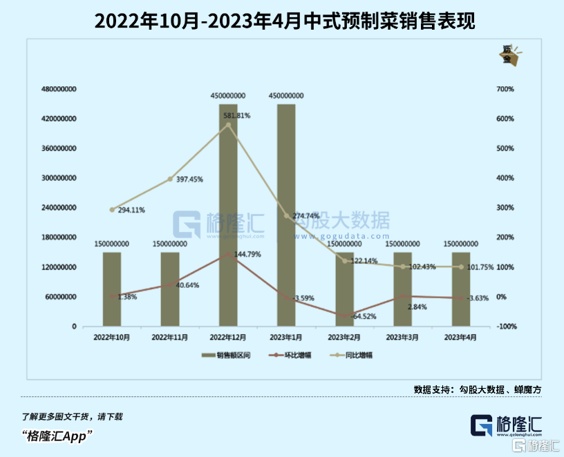 從抖音渠道看,預制菜銷量在去年增長了7倍有余,規(guī)模在二十億左右,在今年1-4月,市場同比還在翻倍增長。按月份比較,銷售趨勢呈現(xiàn)的節(jié)假日效應比較明顯,在元旦、春節(jié)團聚場景集中的12月-1月,人們對預制菜的需求相應增加;同時高端硬菜也貢獻了較大的比重,50元-300元價格帶占今年1-4月銷售額的64%。