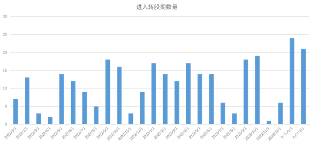 圖表5:進(jìn)入轉(zhuǎn)股期的新增轉(zhuǎn)債數(shù)量