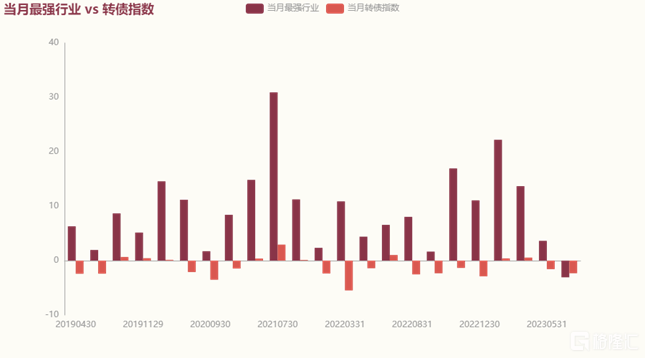 圖表3:轉(zhuǎn)債 vs 股市里最強(qiáng)的板塊