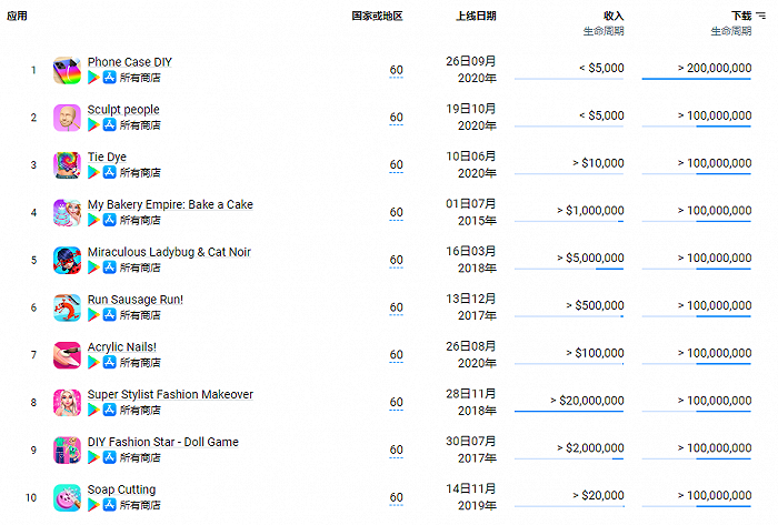這些數(shù)據(jù)帶來的最顯著變化,就是我們越來越難見到新的爆款出現(xiàn)。在AppMagic發(fā)布的2023年第一季度下載量最高的10款休閑游戲中,2023年上線的新游數(shù)量為0。