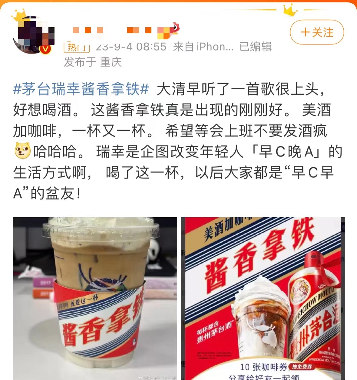 這也很快引起網(wǎng)友們的強勢圍觀和評價,有網(wǎng)友曬圖并表示:這醬香拿鐵真是出現(xiàn)的剛剛好。 美酒加咖啡,一杯又一杯。 喝了這一杯,實現(xiàn)早C晚A。