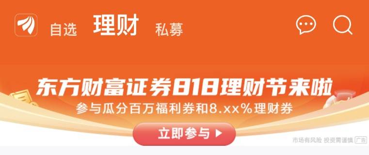 東方財(cái)富證券818理財(cái)節(jié)推出多個(gè)會場,覆蓋不同理財(cái)人群的需求——穩(wěn)錢理財(cái)專場、ETF大賽、追求收益專場、省心理財(cái)專場、開心融融樂小游戲、高凈值俱樂部,主會場集合6大區(qū)域,用戶完成指定任務(wù)后,可以獲得一定數(shù)量的福利券,瀏覽完成全部區(qū)域后可參與抽獎(jiǎng)。和去年不同的是,東財(cái)今年給出的理財(cái)券福利需要抽獎(jiǎng)獲取,而非“普天同慶”。