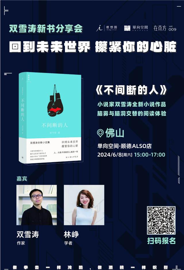 6 月 8 日(周六),15:00 – 17:00,作家雙雪濤與學者林崢將做客單向空間 · 順德 ALSO 店,談談人類世界永恒的問題:情感、善惡和逃離現(xiàn)實世界的方法。