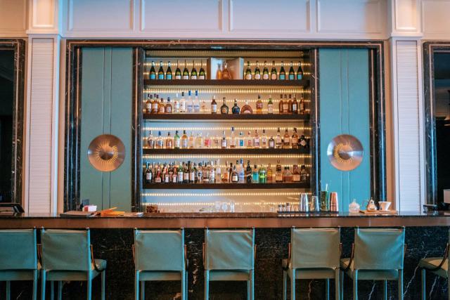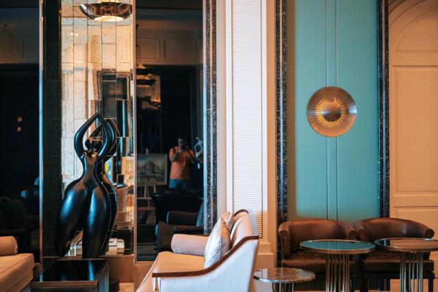 大廳的酒廊也在43樓。這座大廳吧,在白色、金色、粉末的基礎(chǔ)上,又夾雜著一些綠色。