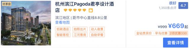 濱江Pagoda君亭的日歷價(jià)格卻一點(diǎn)也不便宜哦,669晚上還是個(gè)不早的價(jià)格。
