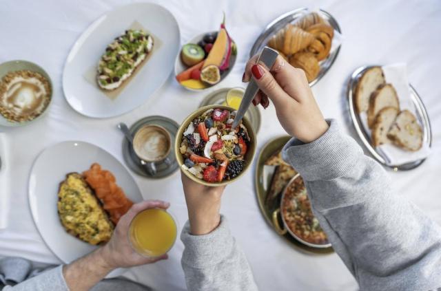 除了每天早餐,這個(gè)套餐還有兩個(gè)人的自助餐。你可以去看看團(tuán)購。他們周末自助餐的團(tuán)購價(jià)格是189,不便宜。
