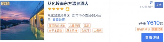 3)廣州從化嶺南東方溫泉酒店山景溫泉標(biāo)準(zhǔn)房2晚可拆分(不含早期 沒有房間泡池一池) 天游泳池泡池,699元;2晚含早; 1池溫泉水 天游泳池泡池,899元;園景溫泉雙臥套房1晚含4人早餐。 餐飲券200元 1池溫泉水,1299元