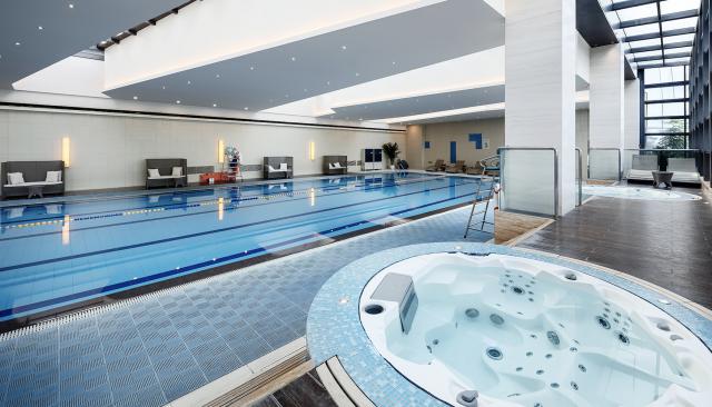 東郊國賓館的游泳池,國標(biāo)溫泉游泳池,25*50米,配有水下音響。游泳池水一年四季恒溫,26°C- 28°C之間。