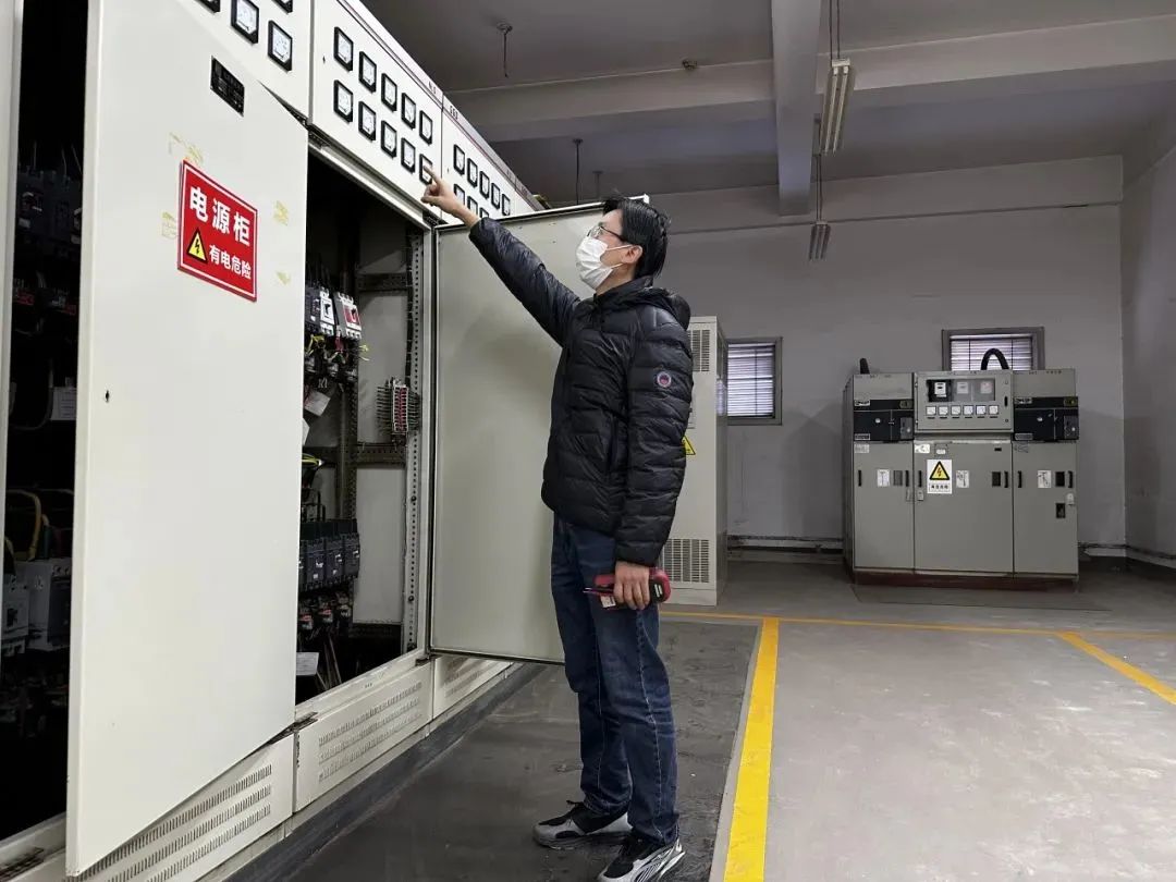 上陳新材料電工到配電室進(jìn)行檢查,中控人員對各種生產(chǎn)項目進(jìn)行監(jiān)控;玉山南部焊工焊接設(shè)備。