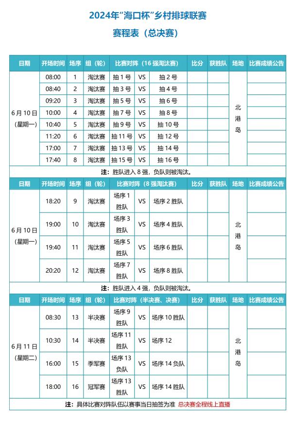 6月10日-11日,2024年“??诒鞭r(nóng)村排球聯(lián)賽將在美蘭區(qū)北港島迎來總決賽。