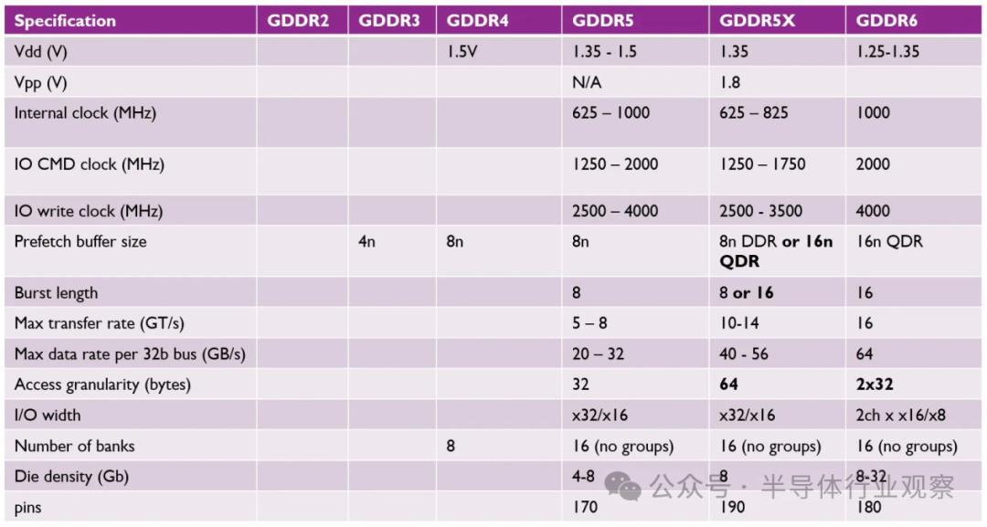 經(jīng)過20多年的發(fā)展,GDDR家族已迭代至第七代,GDDR家族主要有GDDR家族。、GDDR2、GDDR3、GDDR4、GDDR5 和 最新推出的GDDR6和GDDR6 七。在這里,我們先來看看前六代的技術(shù)表現(xiàn)。