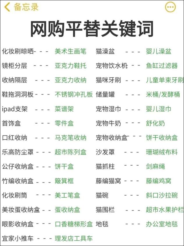 ◎網(wǎng)民總結的網(wǎng)購平替關鍵字(部分)