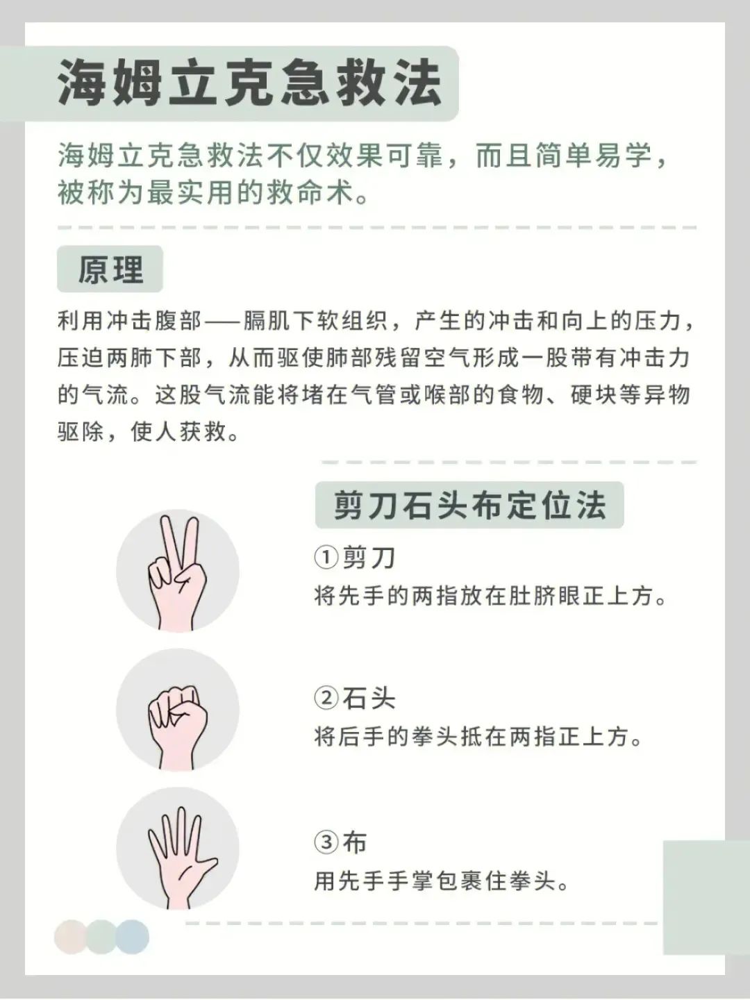 海姆立克急救法又稱腹部沖擊法,是美國醫(yī)生亨利·海姆立克于1974年發(fā)明的一種急救措施,利用肺部殘留氣體,形成氣流沖破異物。海姆立克急救法是世界各地急救氣管異物患者的標準方法,因此也被稱為“生命的擁抱”,因為它可以在關鍵時刻快速、正確、靈活地使用海姆立克急救法來拯救患者的生命。
