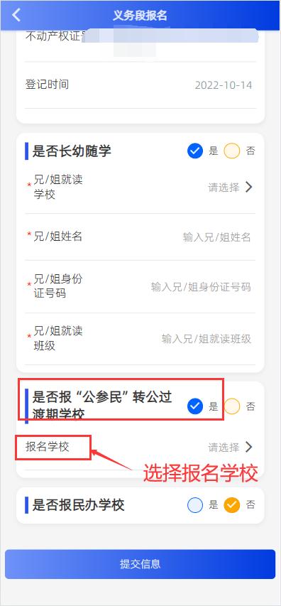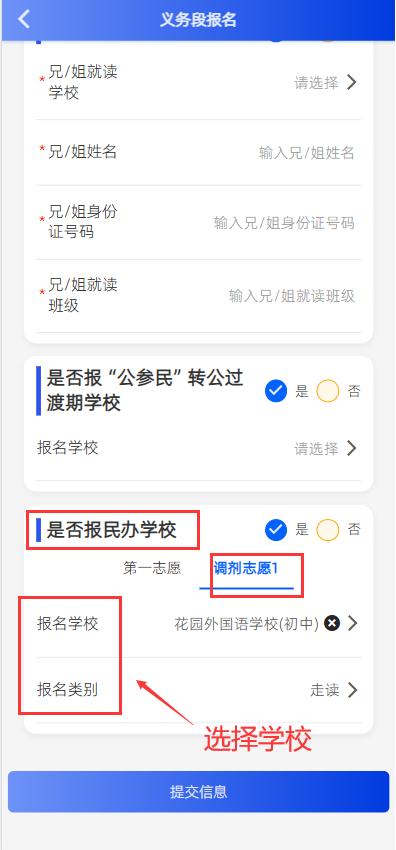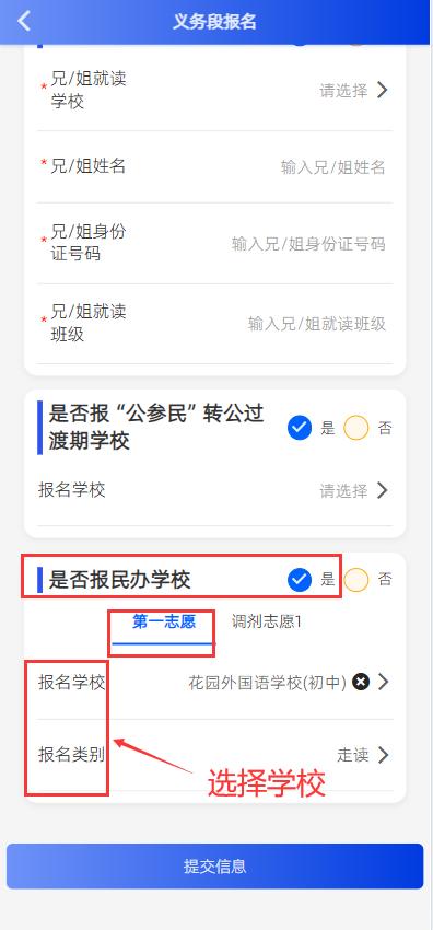 選擇公立學校后,如有意愿,可選擇“公參民”轉公過渡期學校(即外國語學校、外國語小學)報名。