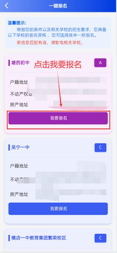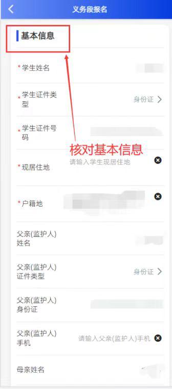 在匹配的學校里,點擊“我要注冊”,查看基本信息,注冊公共信息,戶籍信息,房屋信息。