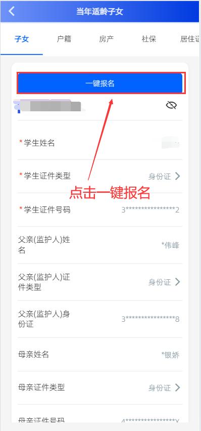 查看信息后,點擊兒童信息上方的“一鍵注冊”,進入注冊頁面。