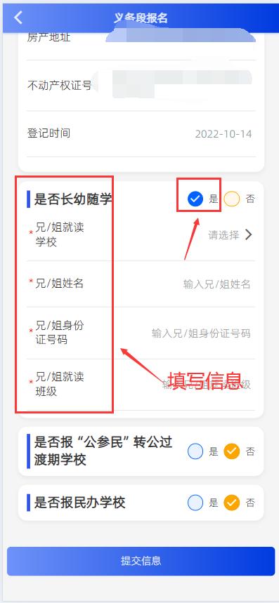 如果需要長幼隨學,需要填寫兄/姐的信息。