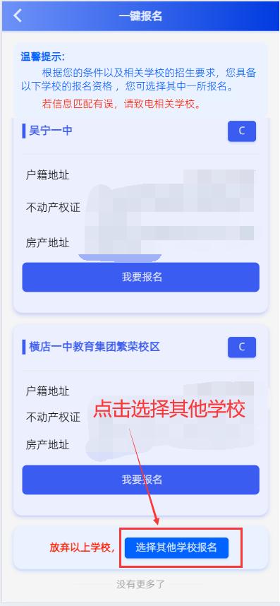 4.如果自動匹配的院校不符合報名意愿,可以點擊下面的“選擇其他學校報名”,但需要注意的是,其他選擇的學校也應該是符合報名條件的學校。