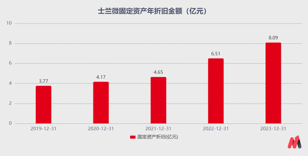 除了需求方還沒有看到明顯的復(fù)蘇,市場競爭還在加劇之外,市場對士蘭微業(yè)績的另一大擔(dān)憂在于其未來固定資本帶來的巨大折舊壓力,也將對其利潤產(chǎn)生重要影響。
