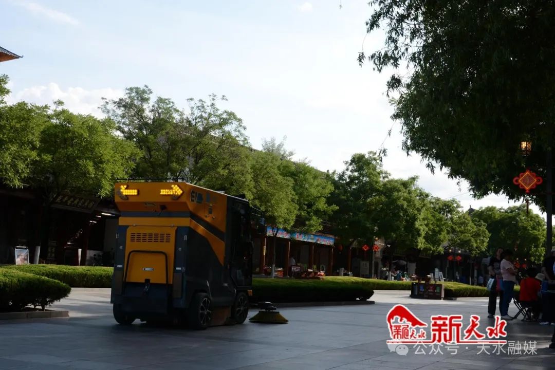 采訪中,秦州區(qū)城鄉(xiāng)環(huán)境衛(wèi)生管理中心清理運輸大隊副隊長石代榮表示,為確保伏羲儀式期間市容環(huán)境衛(wèi)生整潔,中心提前動員部署,迅速開展衛(wèi)生整治行動。目前已派出15輛大型機械掃地機、12輛水車、10多輛大型高壓沖洗機、2輛電動清洗車,并加大深度清洗和清洗頻率,恢復(fù)道路原色。另外,中心還組織了400多名環(huán)衛(wèi)工人,配備了刷子、水桶、抹布等工具,對伏羲廟周圍進行擦拭和清潔。“下一步,中心將精心打造,繼續(xù)開展環(huán)境衛(wèi)生整治工作,全方位進行清潔、清潔、清潔,有效讓城市環(huán)境衛(wèi)生煥然一新,充分展現(xiàn)天水魅力的城市形象?!笔鷺s說。