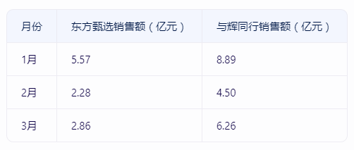 今年前三個月,東方入選銷售額分別為5.57億元、2.28億元和2.86億元,而與輝同行則是8.89億元、4.5億元和6.26億元。