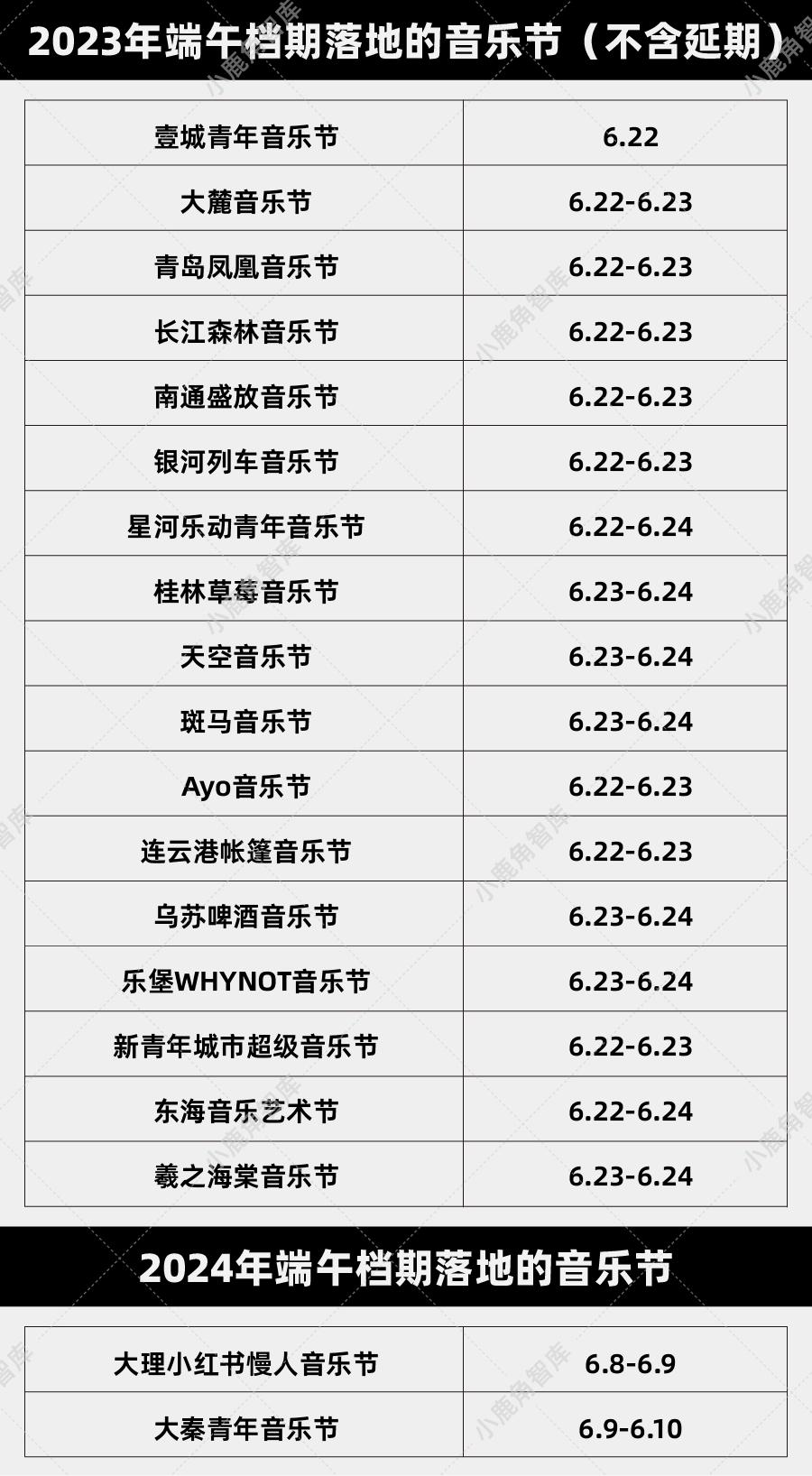 2024年端午節(jié),與2023年共落地23場音樂會相比,今年僅在6月8日至9日舉行的大理小紅書慢人音樂會和6月9日至10日在陜西咸陽舉行的大秦青年音樂會。