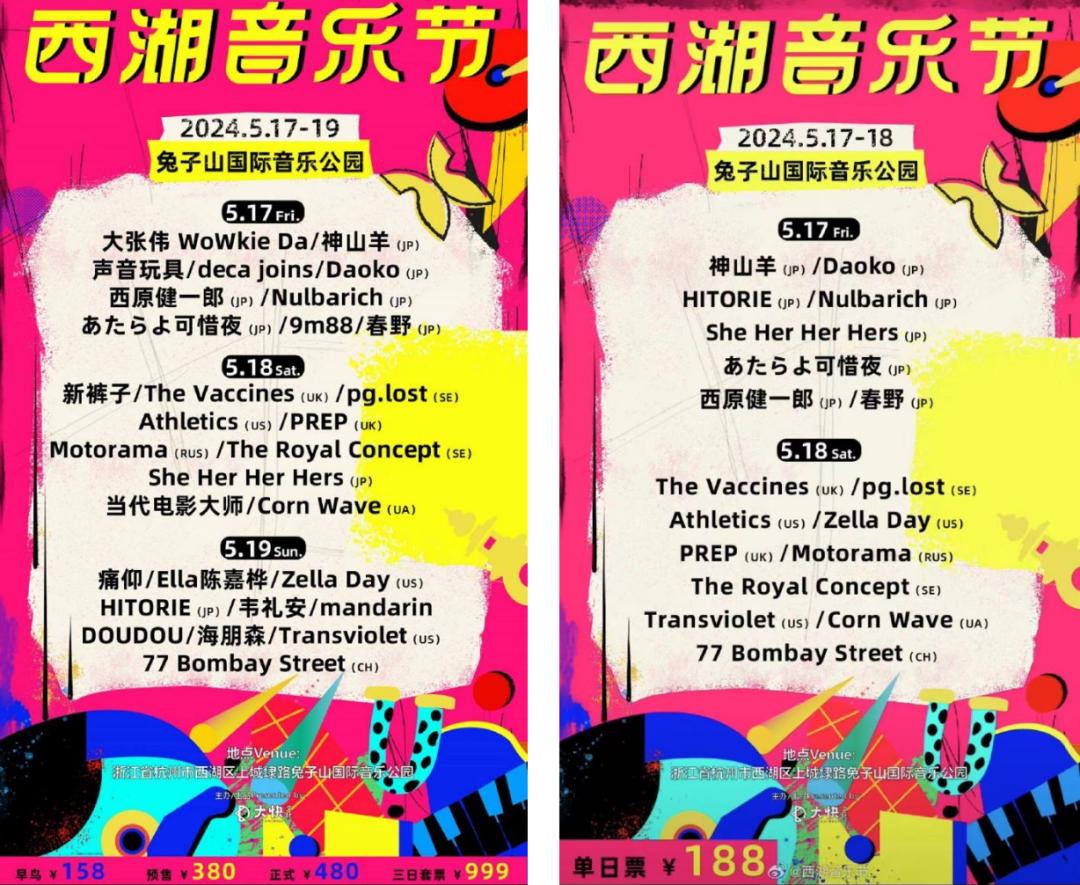 西湖音樂節(jié)相關(guān)負責人馬武透露,音樂節(jié)時間從3天減少到2天,保留了海外藝人陣容,走低價路線。最后,兩天的票都賣完了,一天有一萬人去了。