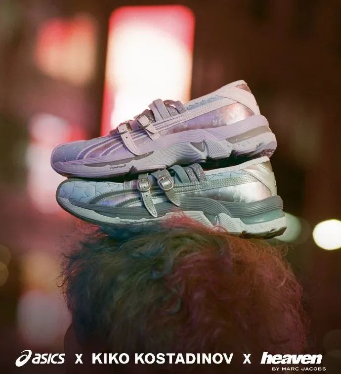 Kikoko,亞瑟士和保加利亞設(shè)計師品牌。 Kostadinov和Heavenen,主要推廣少女風品牌。 by Marc Jacobs聯(lián)合推出的運動瑪麗珍鞋,復古網(wǎng)面的鞋身輪廓和金屬綁帶設(shè)計,將瑪麗珍鞋獨特的俏皮感與運動和Y2K相結(jié)合,充滿了一種奇怪的未來感。