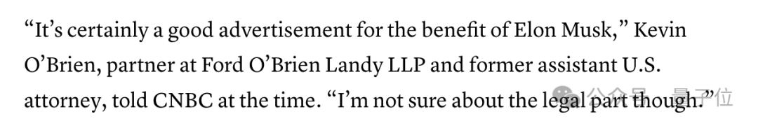 Ford O’Brien Kevinndy律師事務(wù)所合伙人 O’Brien說,這個(gè)案子無疑是對(duì)馬斯克有益的一個(gè)很好的宣傳。