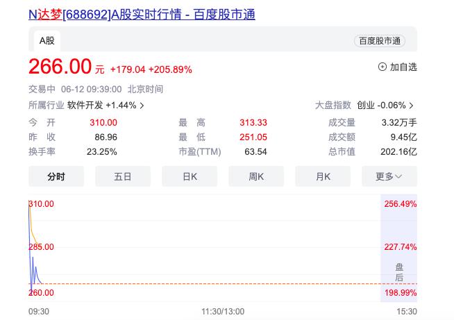 截至北京時間09:達夢數(shù)據(jù)每股漲至266元,漲幅達到205%,總市值202億元。