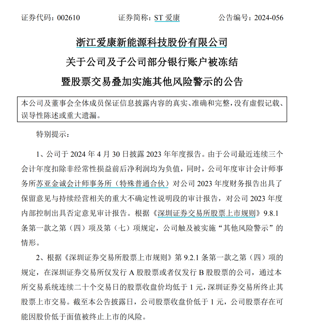 ST愛(ài)康提到,考慮到公司和全資子公司的部分資金賬戶被凍結(jié),考慮到公司和全資子公司的部分資金賬戶被凍結(jié),考慮到公司全資子公司蘇州愛(ài)康光電生產(chǎn)的高效太陽(yáng)能電池組件產(chǎn)品市場(chǎng)情況和公司供應(yīng)鏈、銷售和勞動(dòng)力組織困難。
