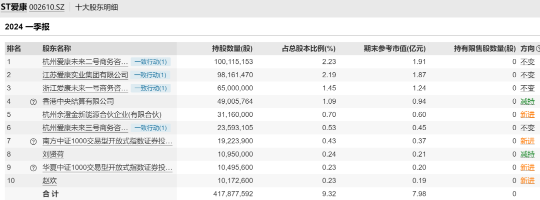 根據(jù)ST愛(ài)康第一季度報(bào)告,華夏中證1000ETF是南方中證1000ETF的前十大股東,其持股比例分別為0.43%和0.23%。