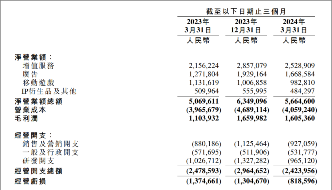 在游戲方面,由于今年第一季度幾款老游戲的營業(yè)額下降,嗶哩嗶哩移動游戲的收入為9.83億元,同比下降13%。;與2023年同期相比,IP衍生品和其它(電子商務)的營業(yè)額為4.84億元,下降了5%。
