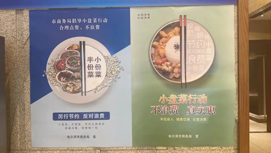 伴隨著“光盤行動”等文明餐桌行動的深入推廣,越來越多的消費者認(rèn)為強行節(jié)約的理念已經(jīng)成為共識。哈市很多餐飲業(yè)都能看到,店內(nèi)的顯著位置和餐桌上都張貼或放置著“小份菜” “半菜”“杜絕浪費 宣傳畫、展示牌等字樣提倡文明用餐,酒店服務(wù)人員還會特別提醒用餐顧客在店內(nèi)推行“小份菜”。一些餐館還專門推出了“小份菜”食譜,引導(dǎo)顧客理性消費,節(jié)約用餐。