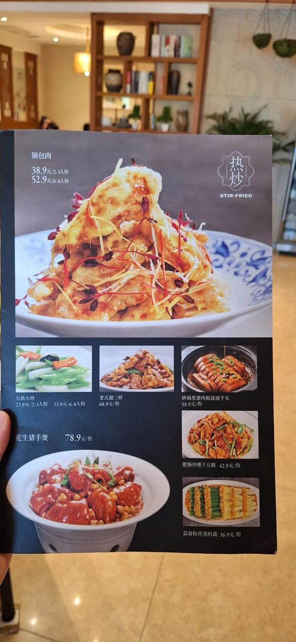 6月13日,記者在九轉(zhuǎn)小磨紅旗大街店看到,餐廳特意更新了菜單——在原菜數(shù)量和價格文字介紹欄目中,增加了“小菜”介紹,如“九轉(zhuǎn)小炒2-3人23.9元,6-8人33.9元”。
