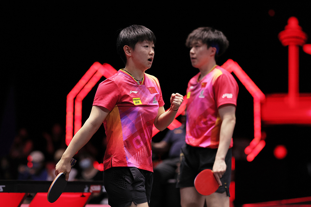 在混雙比賽中,孫穎莎、王楚欽。