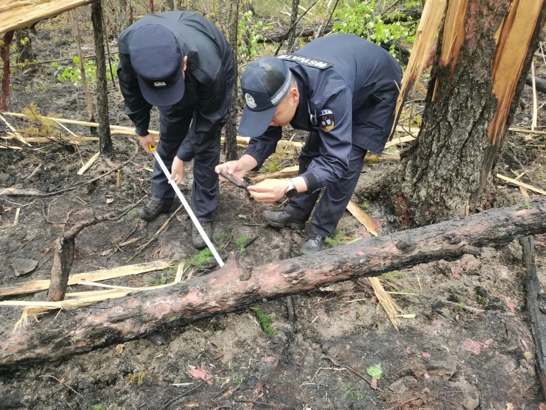 在火災(zāi)現(xiàn)場調(diào)查中,警察充分展示了他們的專業(yè)優(yōu)勢。他們仔細(xì)調(diào)查了現(xiàn)場收集的證據(jù),分析了火勢蔓延的規(guī)律。經(jīng)過先鋒隊8小時的緊張工作,他們發(fā)現(xiàn)阿尼亞林場的兩顆樟子松受到了雷擊。同時,他們還仔細(xì)走訪調(diào)查,確認(rèn)火災(zāi)前后沒有人為活動的跡象。結(jié)合氣象數(shù)據(jù),他們發(fā)現(xiàn)該地區(qū)在火災(zāi)發(fā)生前遭受了雷擊,并成功鎖定了火災(zāi)原因。