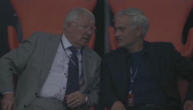 令人驚訝的是,他們在看比賽時特意坐在一起。他們一邊看一邊聊天,相當(dāng)悠閑。鏡頭給他們的時候,穆帥正轉(zhuǎn)向弗爵爺,聽著后者在說什么,眼里充滿了尊重。