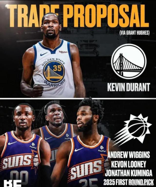 近日,美記 Grant Hughes 以杜蘭特回歸勇士隊(duì)為中心,提供了一項(xiàng)絕世交易計(jì)劃,具體內(nèi)容如下:勇士隊(duì)將威金斯送出 庫明加 盧尼 2025 年度第一輪簽約,從太陽獲得凱文杜蘭特。